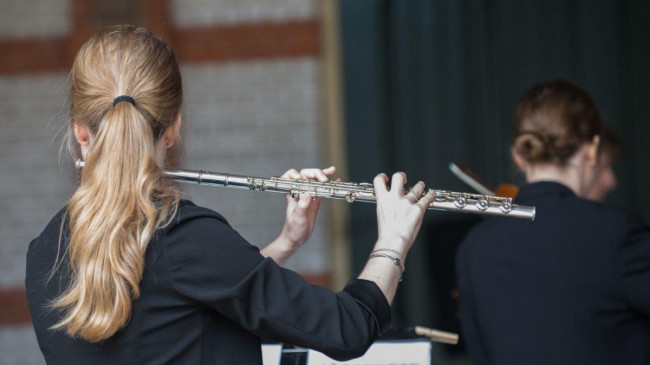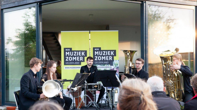 The four musicians of the NJO Tuba Quartet all also played in the NJO Brass Ensemble. The quartet consisted of two tubas and two euphoniums, a special combination of instruments that is not often found. Not much repertoire has been written for it, but these brass players knew what to do with it and played a programme in which the special sound of the low brass played the leading role. In addition to some original works for this composition of instruments, they also brought various arrangements ranging from Piazzolla to Tchaikovsky to two green locations: the Ermelose Schaapskooi (sheepfold) and the former laundry De IJsselstroom, in the floodplains of the river IJssel near Zutphen.